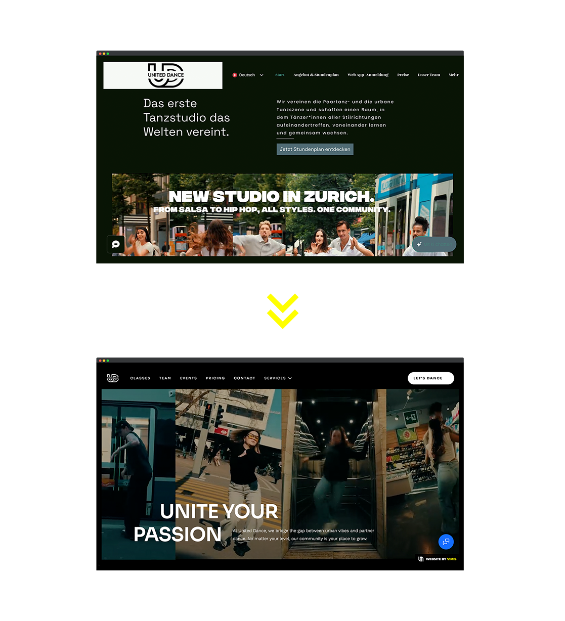 Für United Dance durften wir den digitalen Auftritt grundlegend modernisieren und neu denken. Die Zusammenarbeit war geprägt von grosser Freude und dem gemeinsamen Ziel, eine Plattform zu schaffen, welche die Dynamik und Professionalität der Tanzschule perfekt widerspiegelt.